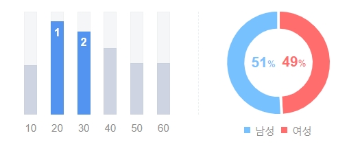 성별로는 여성이 49%, 남성이 51%로 남성의 검색 인기도가 2%p 높습니다.