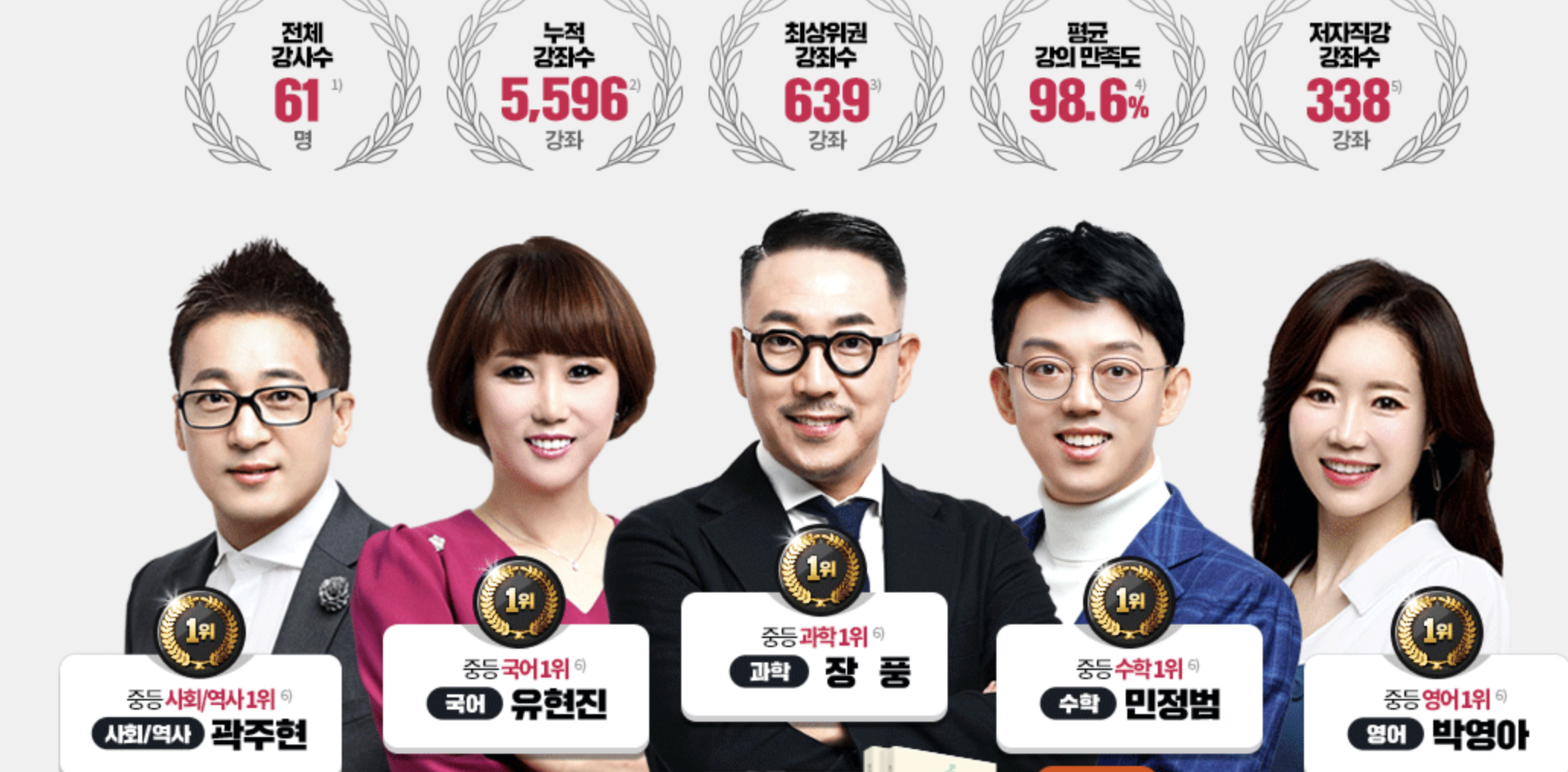 주변에서 이용하고 있다는 학생이 가장 많은 인강 사이트는 엠베스트입니다. 엠베스트는 워낙 스타 강사분들이 많고, 강의도 재미있어서 선호하는 학생들이 많습니다. 그 중에서도 과학 장풍님과 수학 민정범님은 워낙 유명해요.