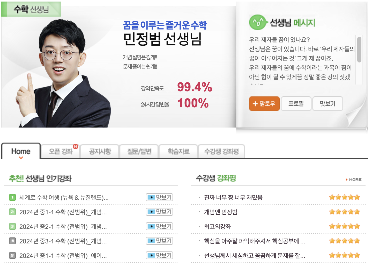 요새 대치동 인근 버스 광고에 매우 많이 실려있는 선생님입니다. 항상 매우 재미있다는 강좌평이 많습니다.