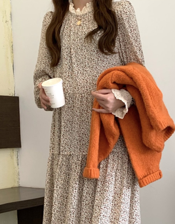 원피스 TOP5 - 빈티지 무드 잔꽃 레이스 쉬폰 롱 원피스